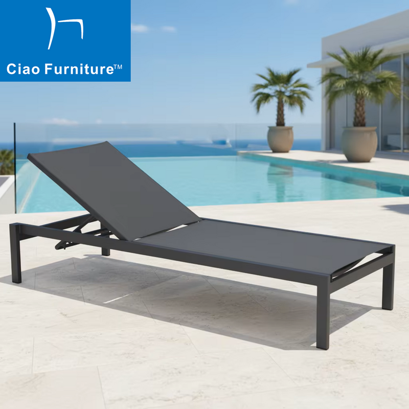 Lounging outside comfortably in this modern aluminium chaise lounge chair. The powder-coated aluminum frame is lightweight, sturdy and rustproof, offering easy moving and high bearing capacity. The back and seat fabric is made of high strength breathable textilene fabric is water-resistant, UV-resistant, quick-drying, and easy maintenance. Feature with 4 adjustable recline settings back to meet your needs. The adjustable backrest lets you recline or lay flat to enjoy comfort experience.